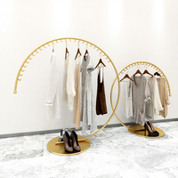 Tasarım Mağazası Kavisli Sergi Standı Parlak Altın Renk Giysi Askılığı Perakende Mağaza Mobilyaları için Sergi Rafları