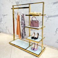Dayanıklı altın kaplama kıyafet rafı giysi ve butikler için ayakkabı teşhir standı altın kıyafet rafı s zemin tipi giysi rafı